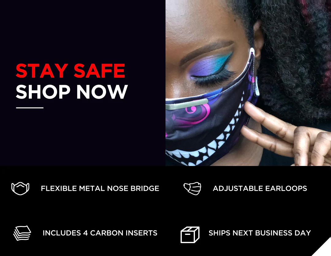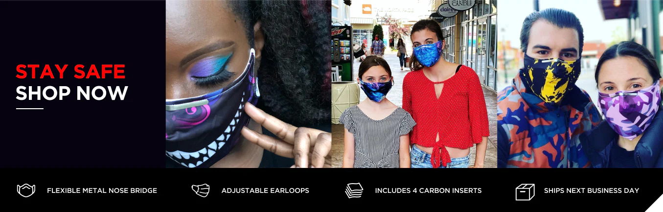 You can rely on our rave masks to keep you protected from COVID-19 and act as a fashionable addition to your ravewear. The metal nose piece ensures a good fit on your face, so your mask doesn't interfere with your eyes or glasses. They're ideal for both essential and non-essential workers who want more personality in their masks. Our unique designs are what make our anti-germ face masks must-haves for rave and EDM lovers. From an Alice in Wonderland-inspired design to camouflage, galaxy, pastel, sugar skull, and other patterns, we make it easy to find one that suits your style. You'll love wearing your mask to music festivals and raves, as these options look phenomenal and act as welcome accessories to your rave clothing. They'll also keep dirt and dust away from your nose and mouth, which is a major plus for outdoor festivals. Should you need replacement carbon filters after using the three included with your mask, you can find them here. When the fabric becomes dirty, simply throw it in the wash and lay flat to dry. With one-of-a-kind artist prints and hassle-free design, you can make wearing a cloth face mask a part of your ravewear and everyday life to keep yourself protected, comfortable, and distinctive.