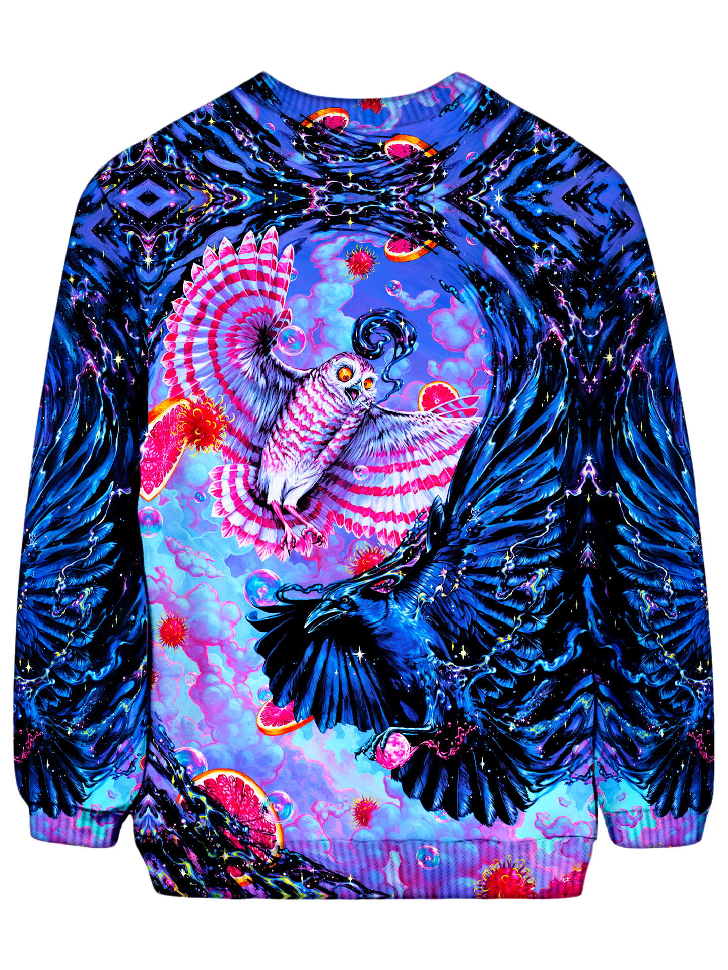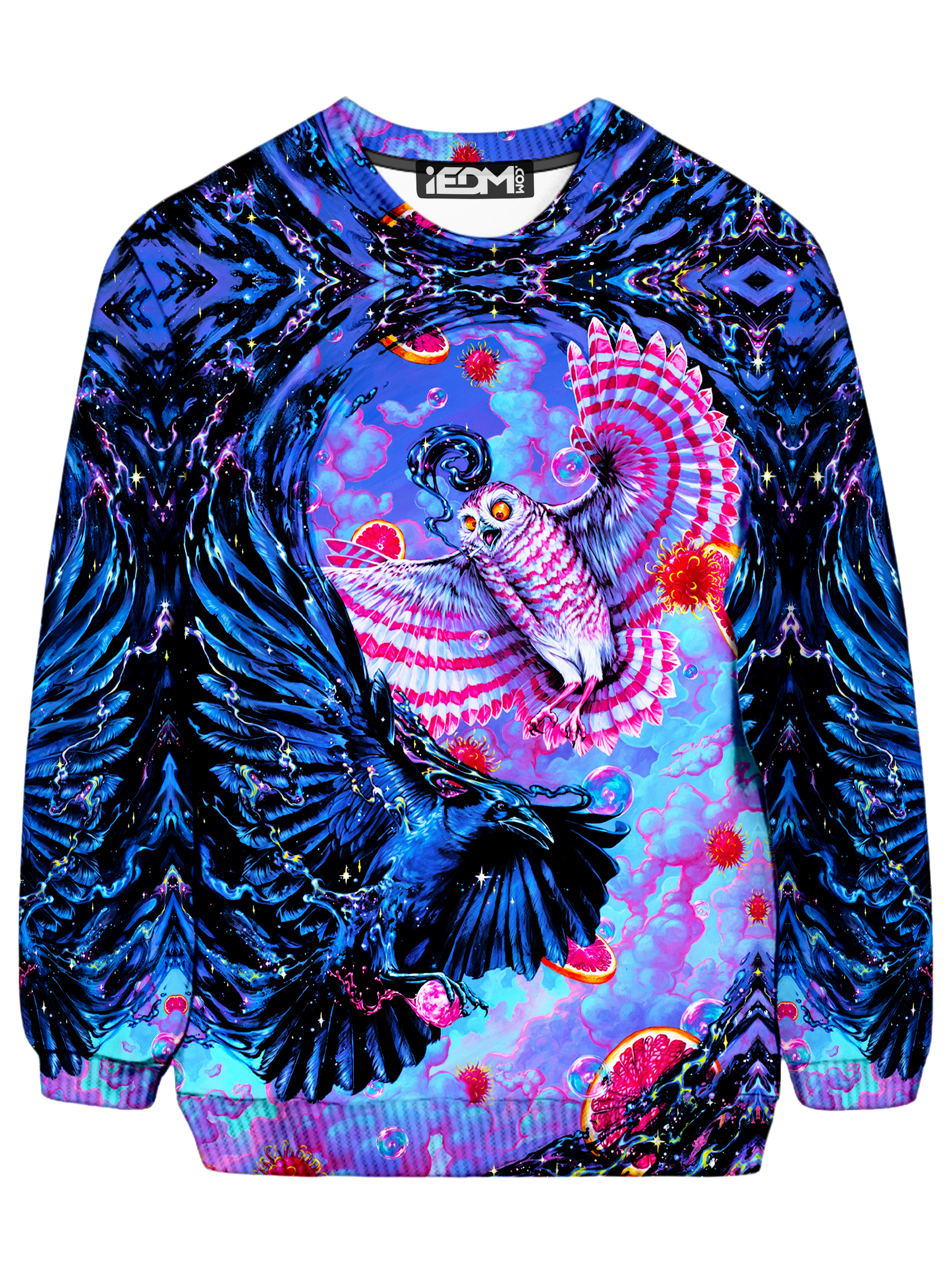 High-definition sublimation printing technique covers the entire front, back, sleeves... everything! Each fabric panel of the sweatshirt is printed with the graphics before sewing to ensure the design is flawless and the construction is perfect.